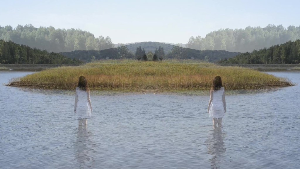 My Island. A female character (the author herself) walks through the water towards a nearby island. Although close, the island as a metaphor for personal space and freedom, becomes more and more distant, and her course, interspersed with editing procedures, becomes longer and longer. Under the pressure of obstacles and limitations, the field of her personality imagination opens, and everything becomes possible.