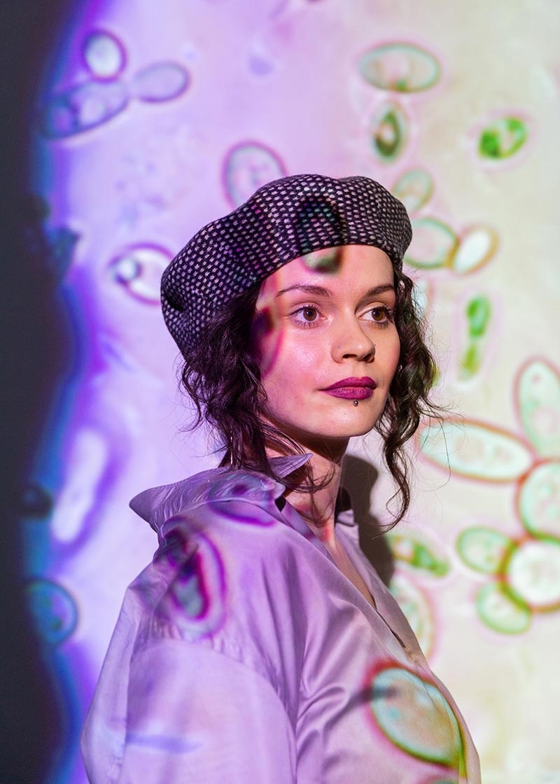 She explores the interdisciplinary territory between art, science and technology (ASTS), shedding light on the relationship between man and nature. In her work, Újhazi uses a range of artistic media including photography, installation, video, audio, painting and sculpture with living cultural forms, in order to explore concepts concerning society’s relationship with the natural environment.