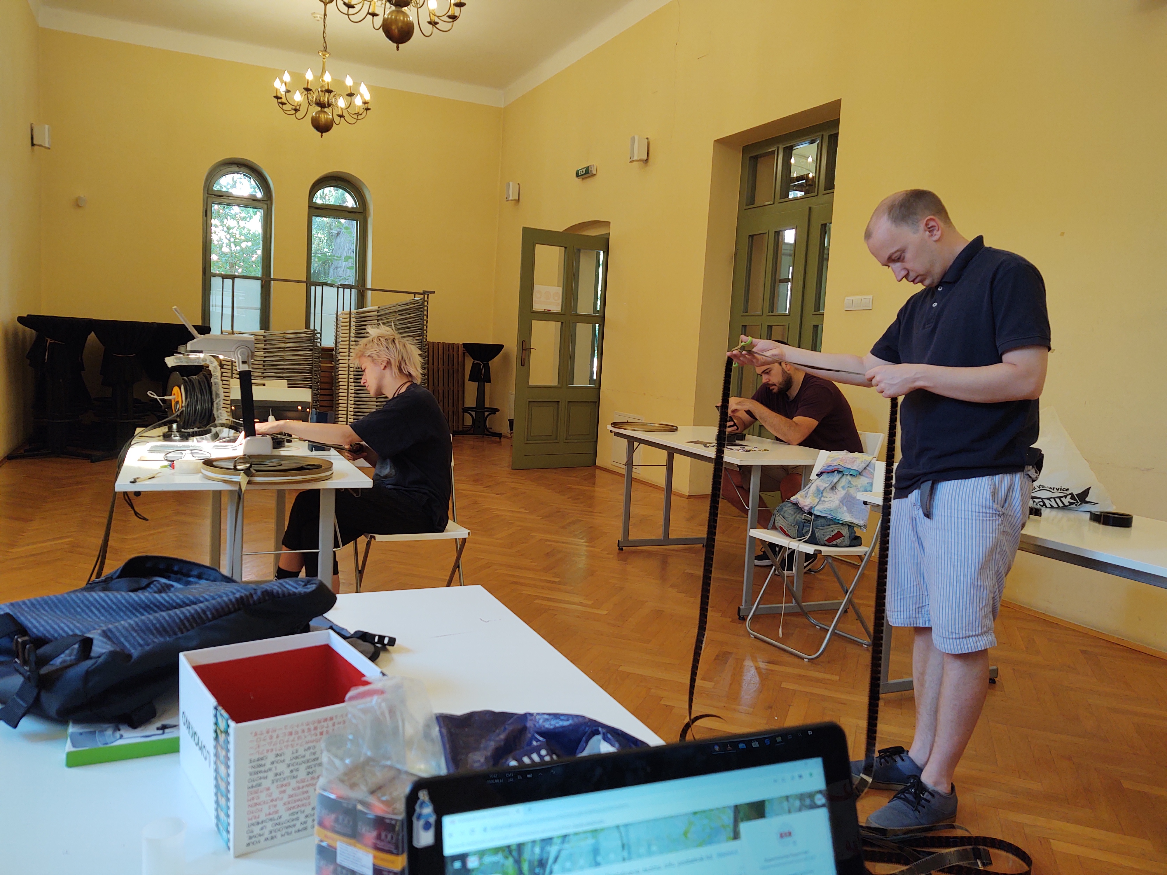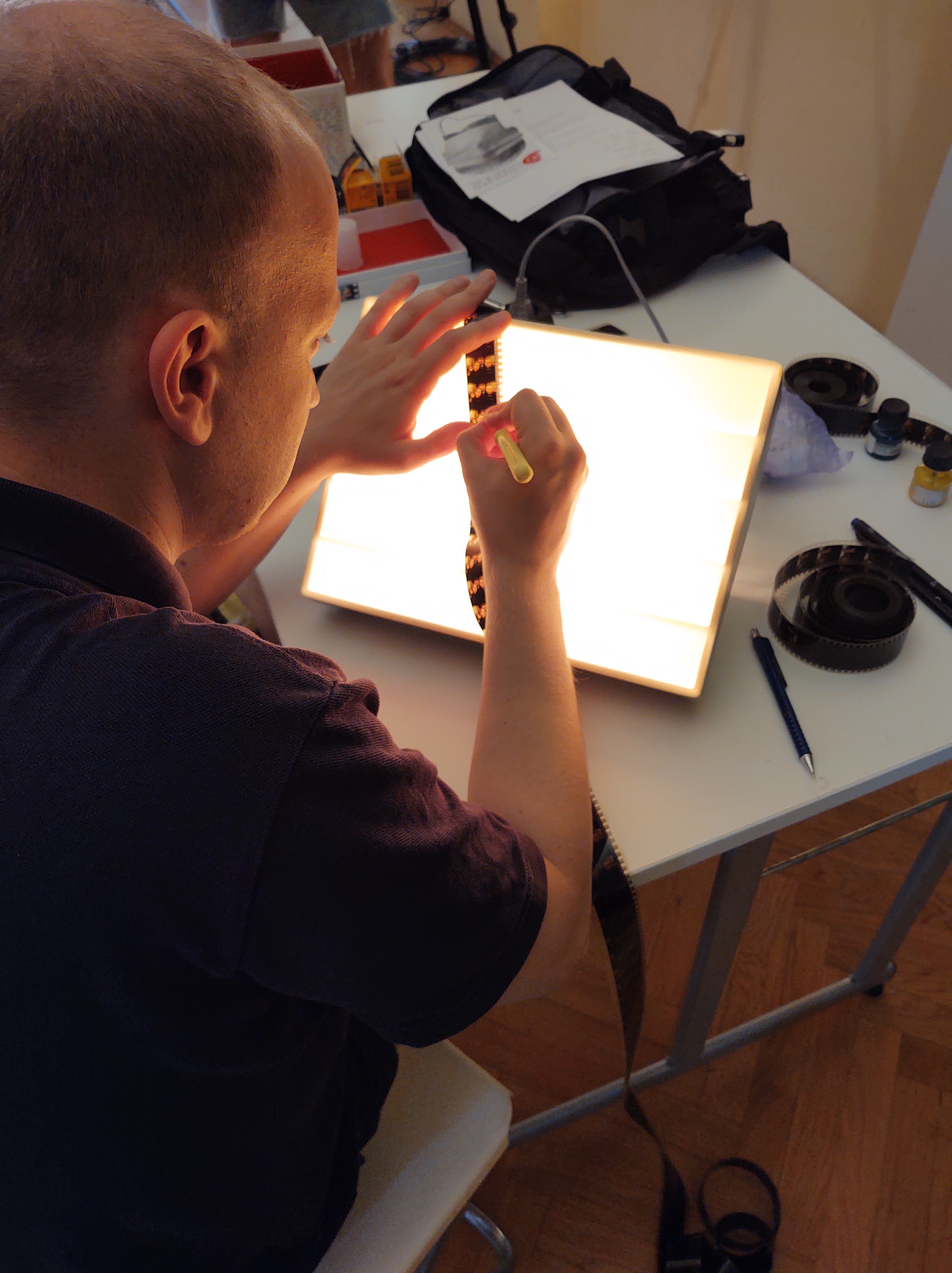 U praktičnom delu radionice polaznici imaju priliku da se oprobaju u radu na tehnikama uobičajenim u procesu stvaranja eksperimentalnog filma.