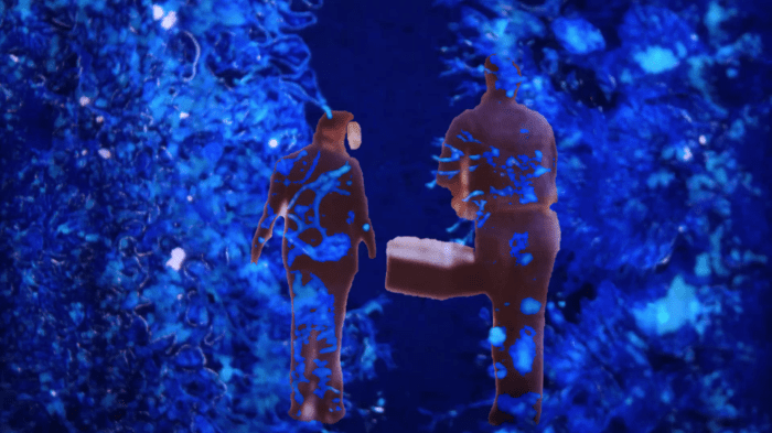 Markovinović dodatno proširuje prostor filma i na samu galerijsku postavku, gde se, nasuprot projektovanoj polu-stvarnosti, pojavljuju različiti optički uređaji poput diaskopa i view-mastera. Ovi uređaji evociraju uspomene iz detinjstva, proširujući narativ sećanja na likove poput Volta Diznija, Mikija Mausa, kao i prizore iz Dubrovnika 1979. Kroz ove dodatne reference stvara se bogat sloj vizuelnih i emocionalnih asocijacija, povezujući prošlost i sadašnjost na granici stvarnog i nestvarnog. Ovakva vrsta arhivskog impulsa (Hal Foster), pruža ne samo iluziju emotivnog prostora, već i ličnu referencu na posleratnu stvarnost, u kojoj se čitav jedan svet raspao. Markovinovićeva mikroistorija koja je pred nama poplavljena je baš kao i prostori iz filma – istorija je poplavela.